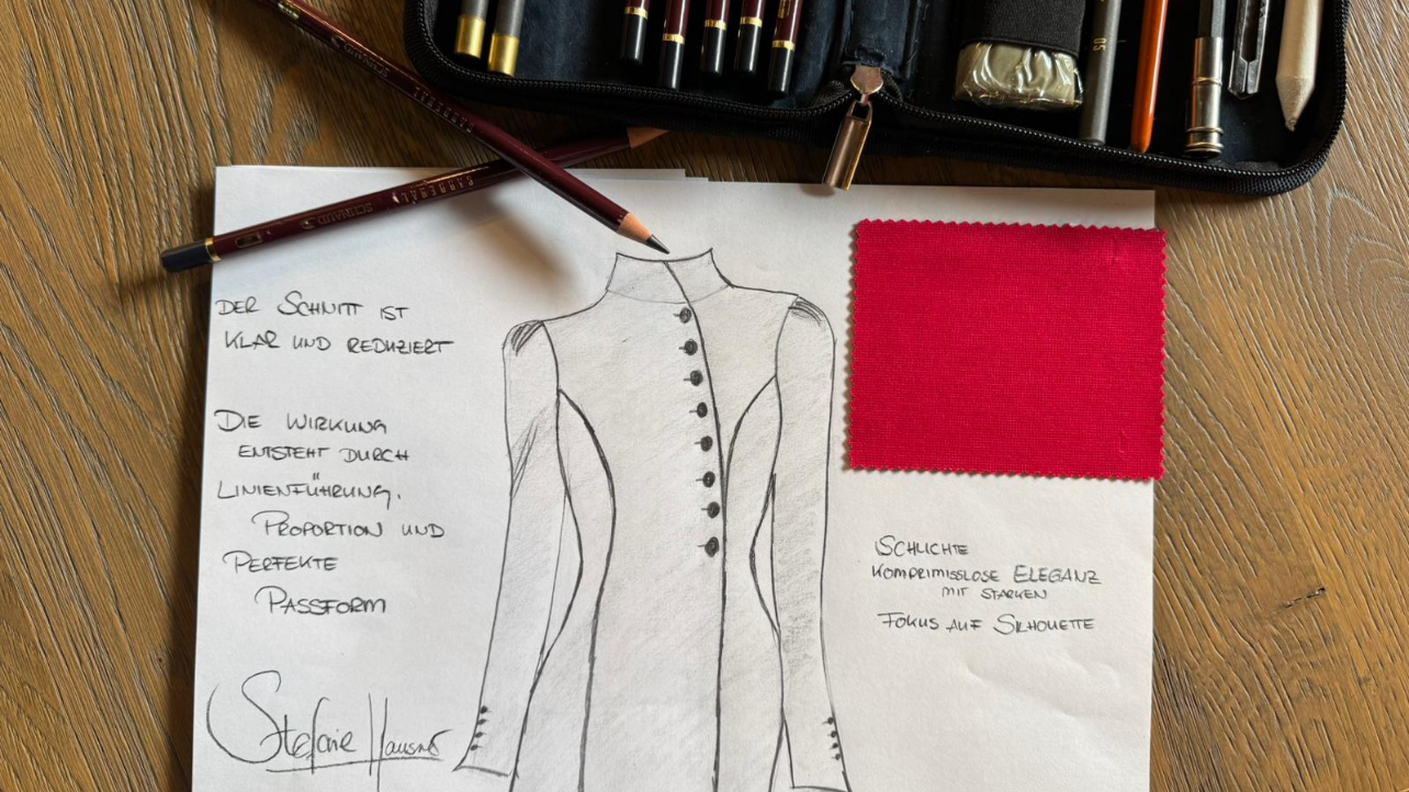 Maßarbeit braucht Zeit, Erfahrung – und Humor. Denn wer Stil hat, nimmt Mode ernst, sich selbst aber nicht zu wichtig. Aus der Skizze wird Charakter, aus dem Entwurf ein Auftritt. Und irgendwann sagt man: „Genau so wollte ich mich fühlen.”