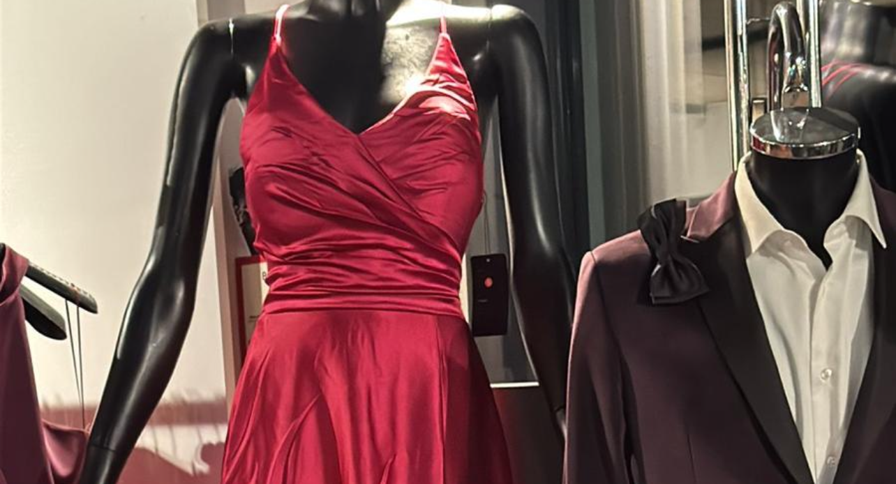 Sie kommt herein – in einem leuchtend roten Kleid, das garantiert alle Blicke auf sich zieht. Er folgt ihr. Er trägt einen bordeauxfarbenen Anzug, hat den Gentleman-Modus aktiviert und strahlt vor Charme. Zusammen? Das ist fast schon unfair gegenüber allen anderen Gästen.